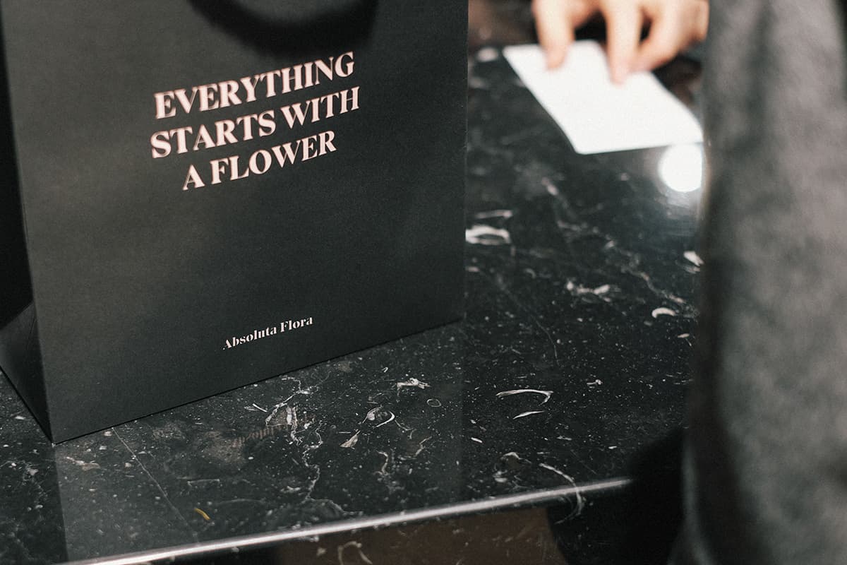 The claim ‚Everything starts with a flower‘ introduce the client to the story of Absoluta Flora.